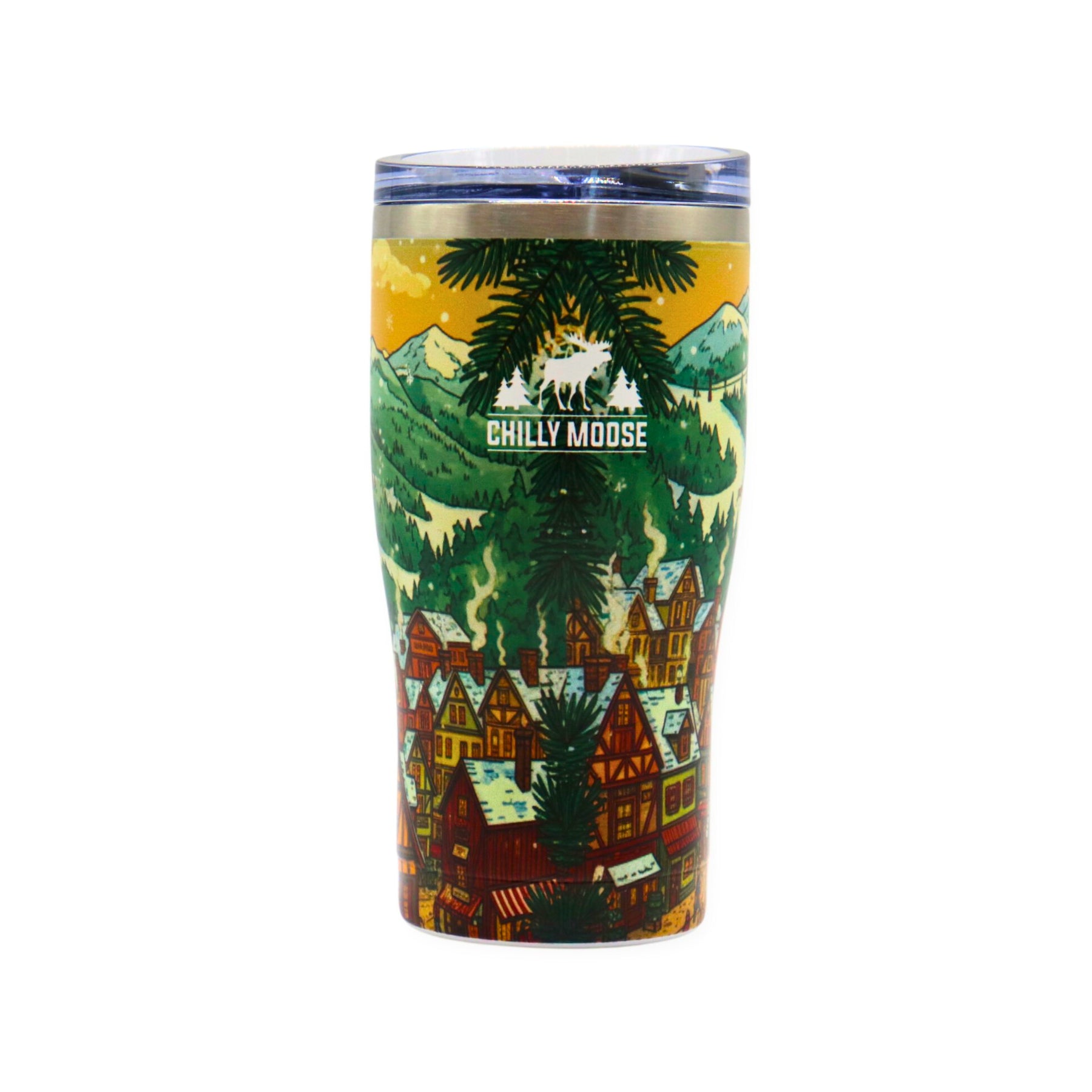 Step into a snowy Canadian village with Alpine, our limited-edition Holiday Tumbler. The artwork wraps fully around the tumbler, featuring hand-drawn chalets, chairlifts, pine trees, and winding ski trails leading up the mountain. Hidden in the scene is a tiny moose: a playful nod to our team’s favourite childhood seek-and-find game. Cozy, nostalgic, and made for winter days, Alpine turns every sip into a moment of seasonal magic.